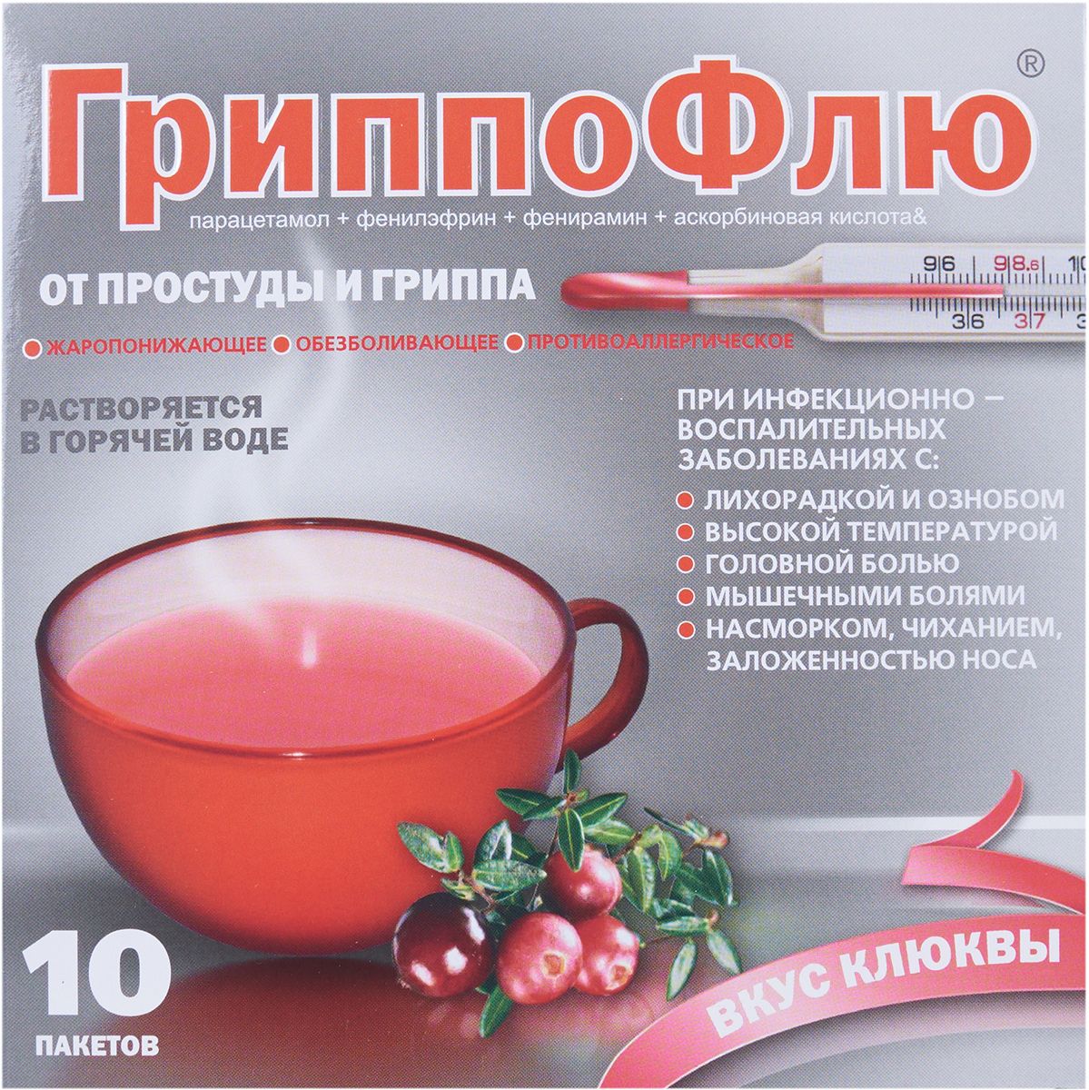 ГриппоФлю от простуды и гриппа (клюква) пор д/приг р-ра 13г N10