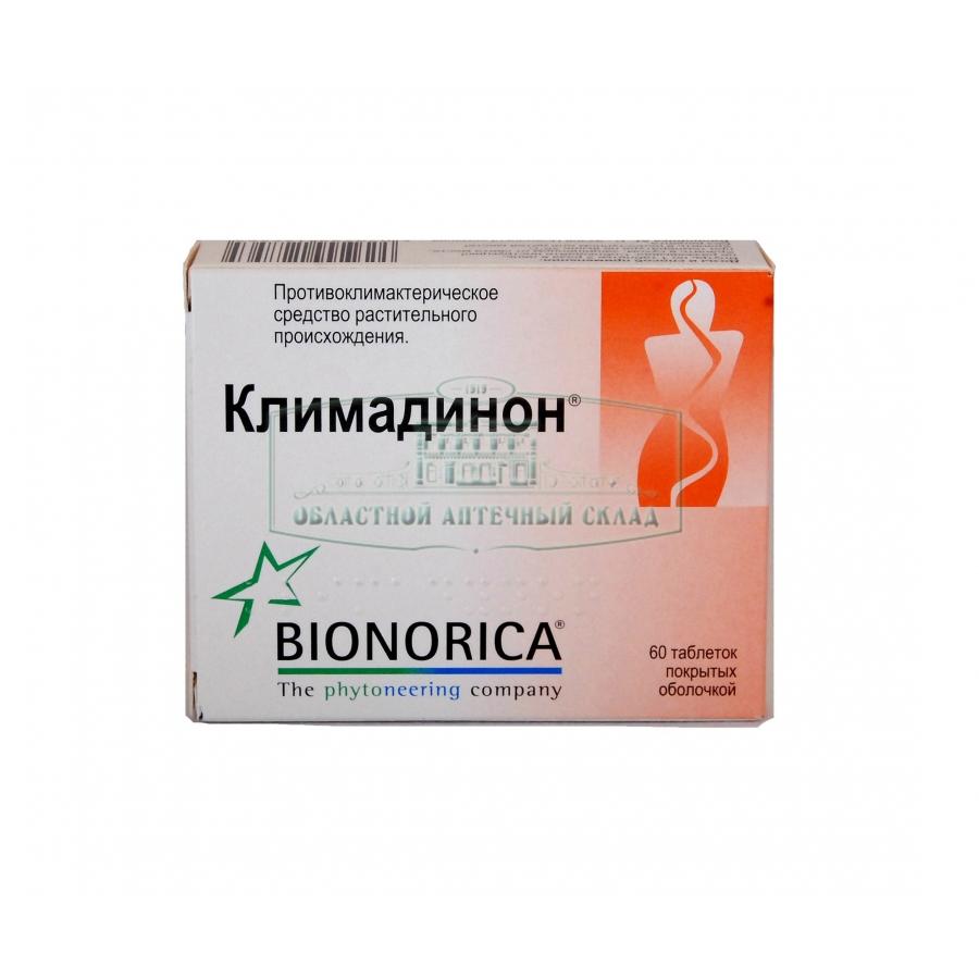 Климадинон - таблетки, покрытые оболочкой, 60 штук в упаковке.