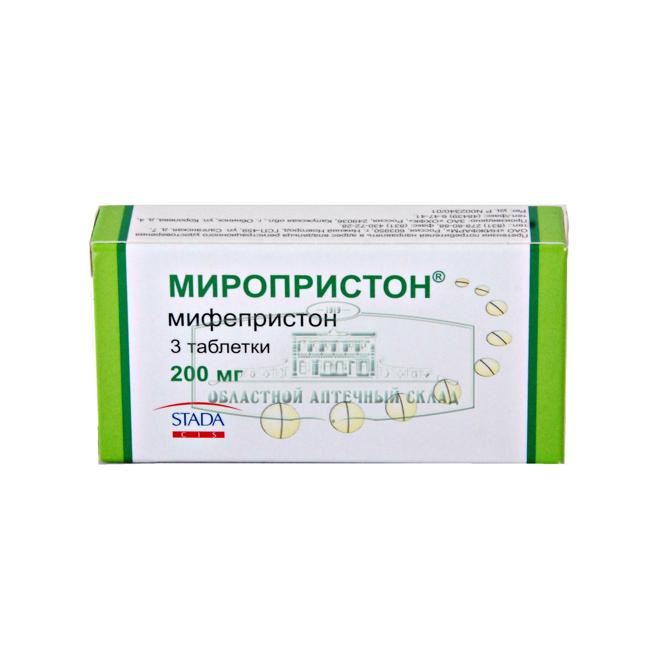 Активное вещество: Мифепристон - 200 мг.