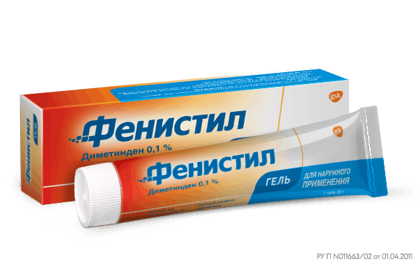 Фенистил Гель начинает действовать уже с первых минут после нанесения, обладает охлаждающим эффектом, облегчая зуд и уменьшая раздражение, вызванное кожно-аллергическими реакциями.