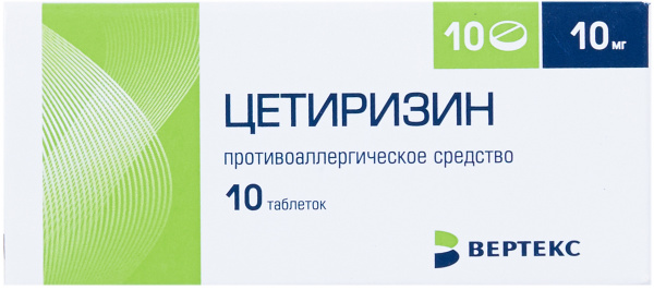 Фармакологическое действие:Конкурентный антагонист гистамина, метаболит гидроксизина, блокирует H1-гистаминовые рецепторы. Предупреждает развитие и облегчает течение аллергических реакций, обладает противозудным и противоэкссудативным действием. Влияет на раннюю стадию аллергических реакций, ограничивает высвобождение медиаторов воспаления на "поздней" стадии аллергической реакции, уменьшает миграцию эозинофилов, нейтрофилов и базофилов. Уменьшает проницаемость капилляров, предупреждает развитие отека тканей, снимает спазм гладкой мускулатуры. Устраняет кожную реакцию на введение гистамина, специфических аллергенов, а также на охлаждение (при холодовой крапивнице). Снижает гистаминоиндуцированную бронхоконстрикцию при бронхиальной астме легкого течения. Практически не оказывает антихолинергического и антисеротонинового действия. В терапевтических дозах практически не вызывает седативного эффекта. Начало эффекта после разового приема 10 мг цетиризина - 20 мин (у 50% пациентов) и через 60 мин (у 95% пациентов), продолжается более 24 ч. На фоне курсового лечения толерантность к антигистаминному действию цетиризина не развивается. После прекращения лечения действие сохраняется до 3 сут.