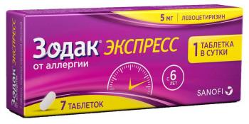 Зодак Экспресс тб п/плен об 5мг уп конт яч пач N7x1 Зентива Чехия