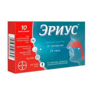 Информация относительно острой передозировки ограничена пострегистрационными сообщениями о нежелательных явлениях и данными предрегистрационных клинических исследований. По данным дозо-определяющего исследования, сообщалось о сонливости при применении дезлоратадина в дозе 10 мг и 20 мг в сутки. Взаимодействие с другими лекарственными средствами Взаимодействия с другими лекарственными средствами не выявлено в исследованиях с азитромицином, кетоконазолом, эритромицином, флуоксетином и циметидином. Прием пищи не оказывает влияния на эффективность препарата. Эриус® не усиливает действие алкоголя на центральную нервную систему.