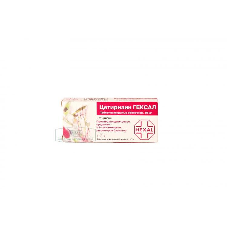 Цетиризин Гексал тб п/о 10мг уп конт яч пач N10x1 Гексал/Салютас Германия