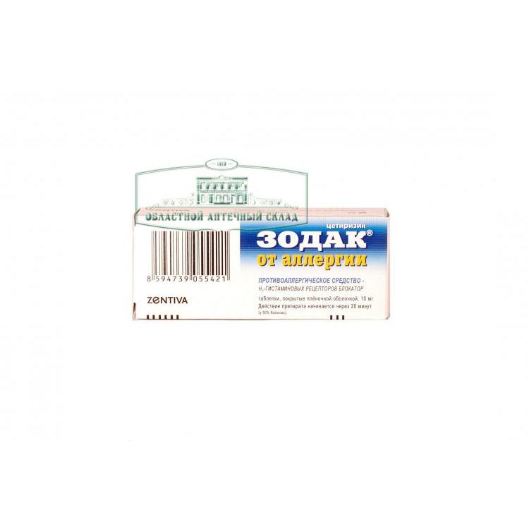 Зодак тб п/о 10мг бл пач карт N10x3 Зентива Чехия
