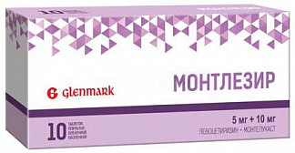 Монтлезир тб п/плен об 5мг+10мг бл пач карт N10x1 Гленмарк Индия