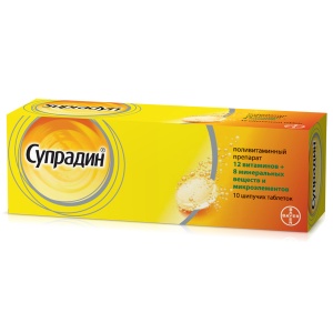 Поливитаминный комплекс с усиленной формулой, заряжает энергией и избавляет от усталости. Супрадин содержит 12 витаминов, минералов и редких элементов, которые участвую в различных реакциях в организме. Помогает существенно улучшить обменные процессы в тканях организма, а также способствует укреплению иммунитета. Назначается для профилактики и лечения авитаминоза.