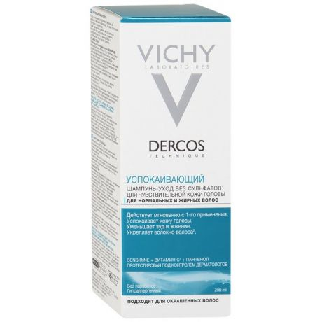 Деркос шампунь-уход успокаивающий без сульфатов для чувств. кожи головы, для ном.и жирных волос 200мл N1x1 Виши Франция