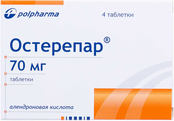 Остерепар – препарат замедляющий разрушение костной ткани. Таблетки нужно принимать женщинам с остеопарозом в период постменопаузы, чтобы предотвратить переломы позвоночника и бедра. Противопоказания: аномалии пищевода, беременность и кормление грудью, детский возраст, дефицит витамина D. При передозировке возможны побочные реакции в виде язвы, изжоги, гастрита.
